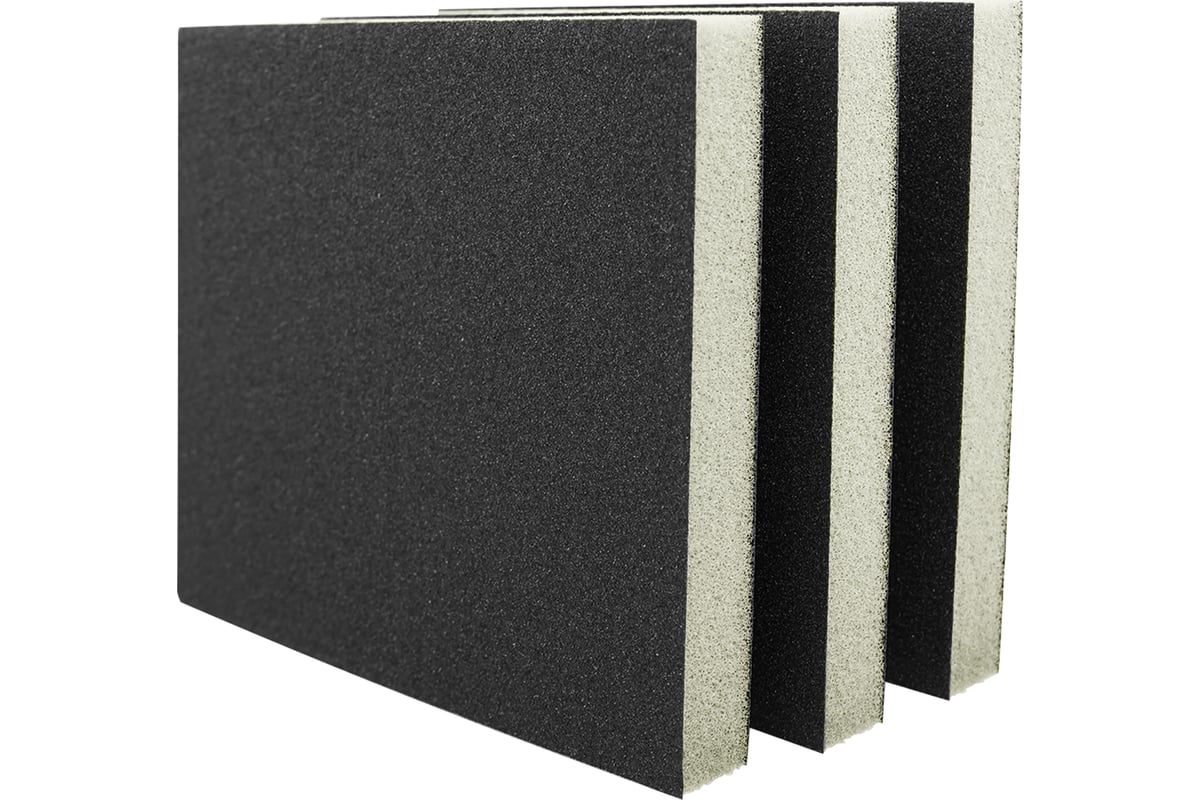 Губка изготовлена из оксида алюминия и упругого эластичного полиолефина [EVA], связанных синтетической смолой. Губку можно использовать для поверхностей с неоднородным рельефом, а также для мокрого шлифования. Постоянное распределение давления благодаря вспененному материалу. Губка средней жесткости, универсальна и имеет длительный ресурс работы.