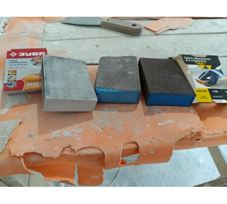 она сразу засоряется, сразу облезает ,сразу забивается, почти сразу перестает шкурить. Абразив стирается сразу, ну например я сфотографировал губку СИА, она начинает облезать отрываться с краю но абразив остается на месте и она продолжает долго шлифовать и шкурить, а зубр на том же фото по все площадь срузу осыпается образив и она гладит НЕРАБОТАЕТ