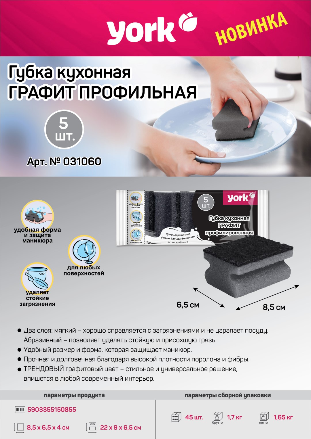 Губки для посуды YORK Графит профильные, 5 шт. 031060