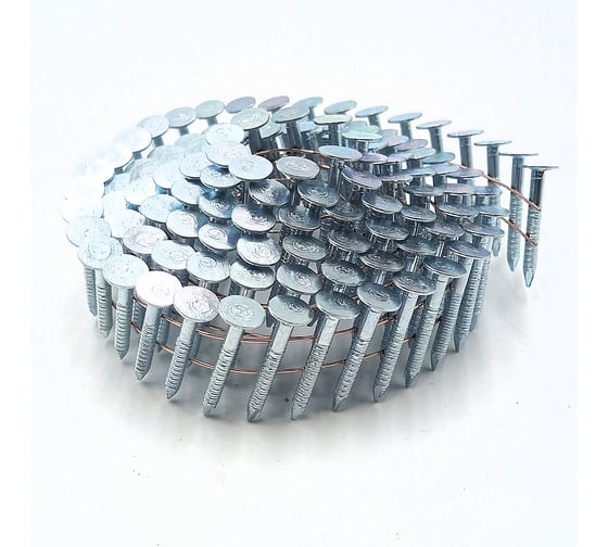 Гвозди кровельные барабанные оцинкованные ершённые 3,1/28 мм ПневмоПарк (тип CRN) для пневматических инструментов, применяются в деревянном домостроении для быстрой настилки кровельных материалов.