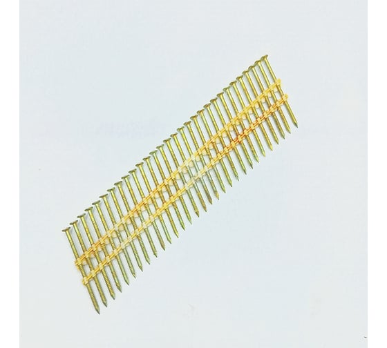 Гвозди реечныеMAINPACK2,5/60 мм с круглой шляпкой сваренные на пластиковой ленте с углом наклона 21° (тип - SN21), накатка кольцевая (ершённые), оцинкованные. Используются в гвоздезабивном пневмоинструменте реечного типа, который применяется в деревянном домостроении, для задач обрешетки, крепления грузов и пр.