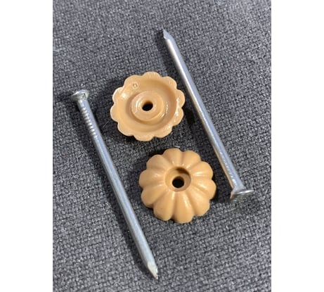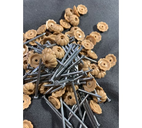 1. Пластиковые шляпки без облоя или наплывов. Все ровные и аккуратные. Головки гвоздей подходят в пазы этих шляпок, что тоже немаловажно для совместимости. 2. Хотелось бы отметить острые наконечники у метизов. В целом, головки круглые. Присутствуют и отчетливо видны насечки. По бокам они тоже есть, хотя и не так заметны.