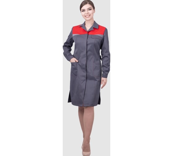 Халат ГК Спецобъединение КМ-10 ЛЮКС летний, серый-красный, женский (152-156, 170-176), шт, Хал 546/152/170