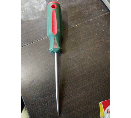 Удобная, порезиненная рукоятка. Отличное качество металла. Диаметр шила позволяет использовать для серьёзных работ.
