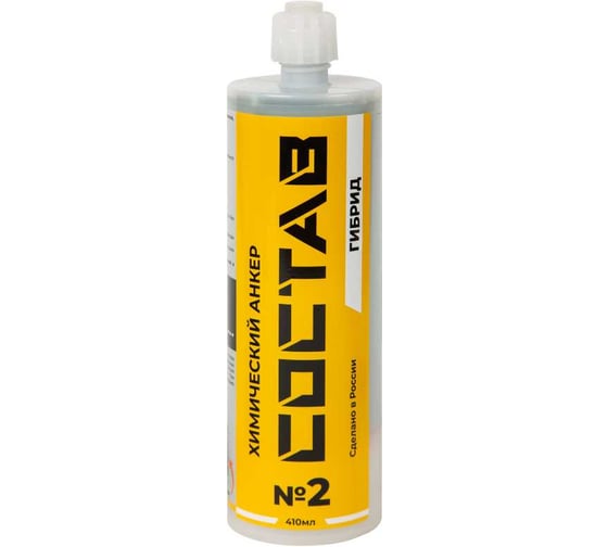 СОСТАВ №2 Гибрид (410 мл) — это прочный, быстрый и универсальный химический анкер, созданный для ежедневной работы на профессиональных строительных объектах. Внутри — действительно профессиональный гибридный клеевой состав, который обеспечивает высокую прочность сцепления в бетоне, кирпиче, газобетоне и пустотелых материалах.