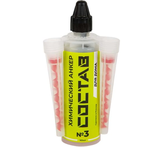 СОСТАВ №3 (165 мл) — это экономичная и удобная версия нашего популярного химического анкера, созданная специально для домашних работ, ремонта и бытовых задач. Такой объём идеально подходит рачительному хозяину: вы покупаете ровно столько состава, сколько действительно нужно, не переплачивая за излишки.