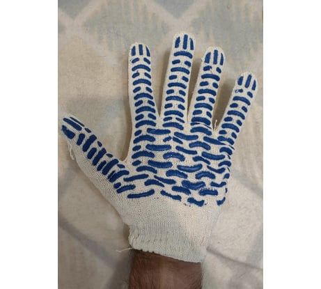 Мне пришли перчатке не как на картинке в точечку, а с полосочками - они даже лучше. Перчатки тонкие и не плотные, но за счёт длинных полосочек ПВХ сохраняют свою работоспособность дольше. Вязка не плотная, но без лезущих ниток и манжеты не мархрятся.