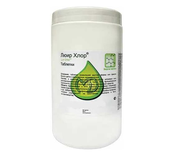 Дезинфицирующее средство хлорка в таблетках для мытья пола Люир Хлор представляет собой хлорные таблетки белого цвета с характерным запахом хлора, содержащие в качестве действующего вещества натриевую соль дихлоризоциануровой кислоты, а также функциональные компоненты, способствующие лучшему растворению средства.
