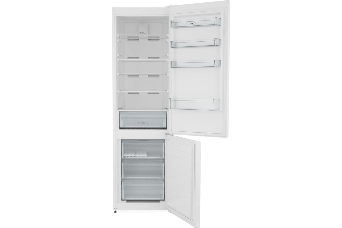Холодильник Jacky' JR FW20B1 - двухкамерная модель с нижним расположением морозильной камеры, общим объёмом 379 литров, выполненная в белом цвете.
