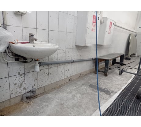 Сделали выпуск из раковины. Трубу смонтировали на эти клипсы.