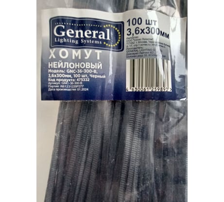 Вопросы и ответы о нейлоновом хомуте General Lighting Systems GNC-36-300-B, 3,6x300мм, черный 100 475332