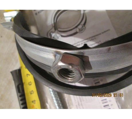 Хомут оцинкованный с резиновым уплотнителем Terma 4 1/2" 120-129 мм, с гайкой М10, компл.шпилькой-шуруп.+дюб. 24273 17774
