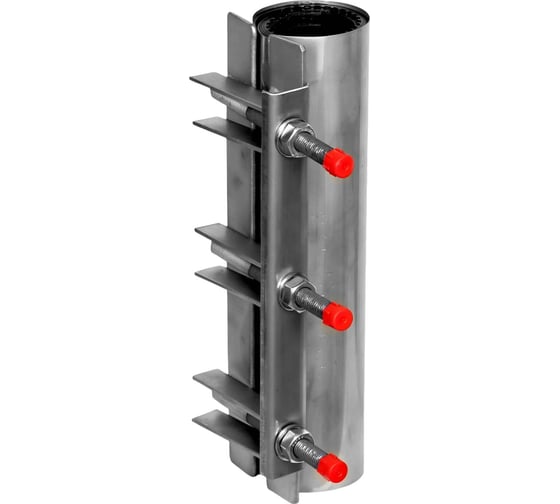 Ремонтный хомут для труб нержавеющий применяется для ликвидации течей в трубопроводах, транспортирующих различные жидкости, включая питьевую воду. Ремонтный хомут из стали является надежным, самым быстрым и удобным средством для оперативной ликвидации локальных течей. Ремонтные хомуты можно использовать для ремонта труб из широкого спектра материалов: литой чугун, ковкий чугун, сталь, сталь с покрытием из полиэтилена, ПВХ (поливинилхлорид), армированный стеклопластик, полиэтилен, асбестоцемент. Диапазон рабочей температуры: резина EPDM от -20°С до +150°С. Хомут состоит из корпуса с резиновым уплотнением, накидных скоб и метизов. Корпус -представляет собой цельную конструкцию из нержавеющей стали. В зависимости от диаметра хомута бандаж изготавливается из листа металла, толщиной от 0,8 до 1,5 мм. Резиновое уплотнение с внутренней поверхностью типа "вафля", в которое впрессован вкладыш из нержавеющей стали, изготовлено из этилен-пропиленового каучука (EPDM). Длина хомута должна быть минимум на 145 мм больше длины трещины на трубе. Для труб из полиэтилена и ПВХ минимальная длина на 50% больше. Длина хомута должна быть как минимум в три раза длиннее, чем ремонтируемый дефект. Максимально допустимое отклонение осей трубопроводов составляет 2°. Максимальное отклонение по соосности не должно превышать 3 мм. Перед началом монтажа убедитесь в том, что хомут подобран правильно по обжимному диапазону. Очистите трубу, удалив с поверхности как можно больше грязи и коррозии.