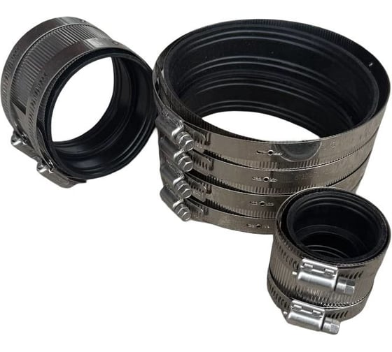 Прокладка — изготовлена из эластомерного материала с канавками и выступами, расположенными на её поверхности. При затягивании металлический экран прилегает к канавкам и выступам прокладки, обеспечивая герметичность и надежное соединение. Внешний металлический экран изготовлен из нержавеющей стали, экран регулируется в зависимости от диаметра и длины трубы для устранения утечек. Гофры металлического экрана создают давление на прокладку и трубу, обеспечивая надежное и прочное соединение.