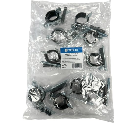 Хомут трубный сантехнический TENHO 1 М8 (32-35) Комплект с дюбелем и шурупом, 10 шт. Р00080017