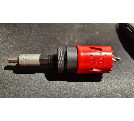 Хороший хвостовик. Изготовлен качественно. Биение минимальное, его практически нет. Резьба под коронку хорошая. Сверло в комплекте 6.2, но в сам держатель подходит 6.5 он сидит очень плотно. Хвостовик шестигранный.