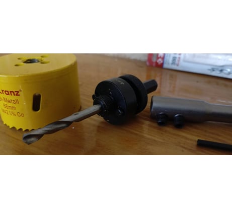 Способ крепления конечно... интересный. Либо ты накручиваешь коронку до конца, но зачем тогда штифты. Либо ты используешь штифты, но коронку тогда накрутить ты можешь далекооо не до конца, и она вся болтается. Использовать ли такой способ крепления каждый решает сам. На пару отверстий этого хватит, без идеальной точности (но коронки вообще не про точность, они все кривые косые). Самое главное что можно убрать штифты и просто накрутить как на обычный хвостовик. А вот что реально плохо - так это... качество сборки. Какое качество сборки у держателя коронок? А вот они винт фиксации сверла слабо затянули, да еще и МАСЛА туда налили. И при первом сверлении винт открутился, когда в конце было усилие большое. Хорошо у меня шестигранники всегда под рукой, затянул винт, и досверлил.