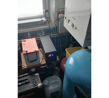 Купил для газового котла Viessman vitopend 100-w, работает тихо, вентилятор включается только в моменты подзарядки АКБ. При работе встроенного циркуляционного насоса в котле, деления нагрузки не светятся. При включении горелки и вытяжного вентилятора (так как котёл с закрытой камерой сгорания), светится 2 деления нагрузки из 5. АКБ брал этого же производителя на 75Ач. Пока не проверял, на сколько часов работы при отсутствии напряжения хватит.