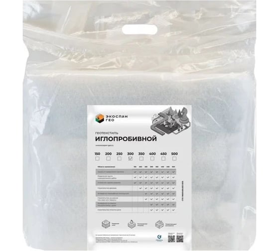 Иглопробивной геотекстиль Экоспан Гео ИП 300г/м², 2х5м (в коробке) 36.11.09.02.00.300.0005.2000.00