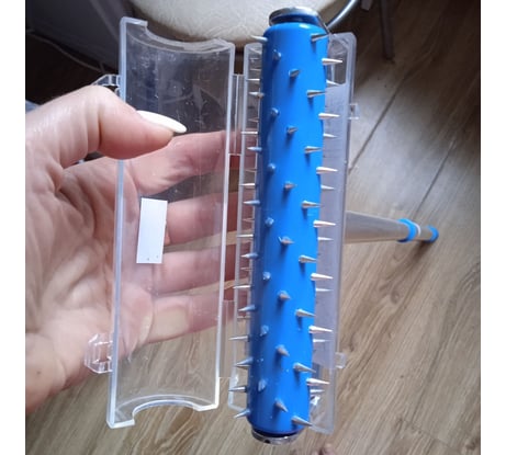- Ролик выполнен из прочной пластмассы и стальных игл, что позволяет с легкостью наносить перфорацию на гипсокартонные листы, а так же на старые обои, для последующего их удаления