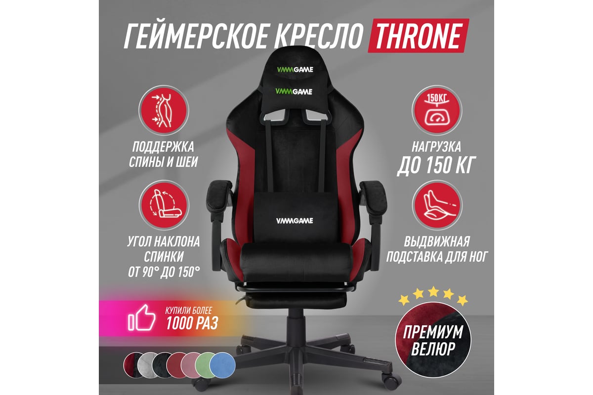 Игровое компьютерное кресло VMMGame THRONE VELOUR, велюр черно-красный OT-B31-VRBKRD