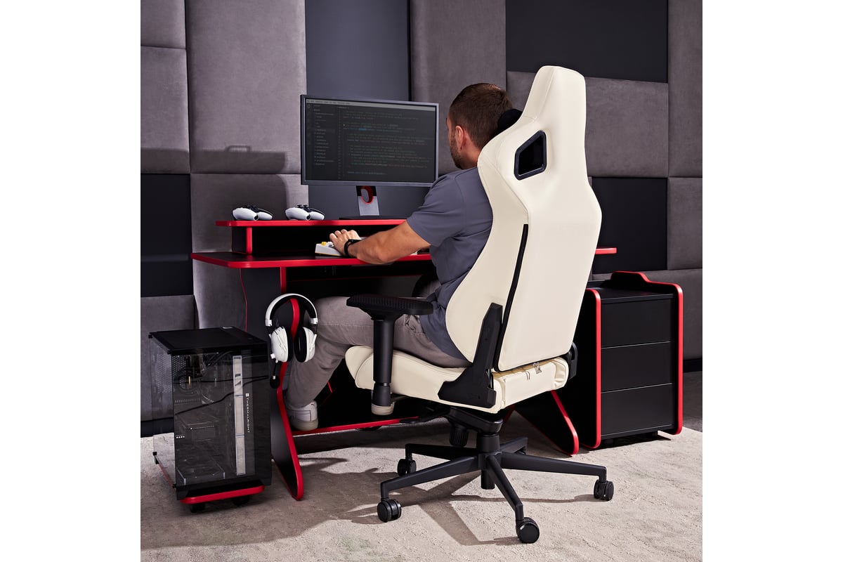 Геймерский стол изготовлен из высококачественного ЛДСП толщиной 16 мм. Помимо прочности и долговечности, такой материал легко очищается от загрязнений и следов. Широкая столешница шириной 1400 х 800мм позволит вам свободно разместить все необходимые аксессуары для гейминга а благодаря эргономичному вырезу спереди, вы сможете удобно расположиться перед монитором и удерживать локти в правильном положении.
