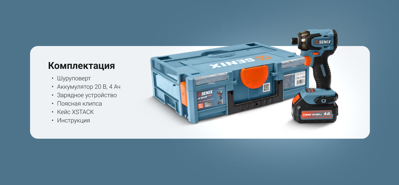 Импульсный шуруповерт SENIX X2 20В, 180Нм, 1х4Ач, ЗУ, кейс PDIX2-M6-EU