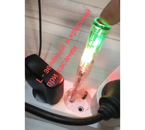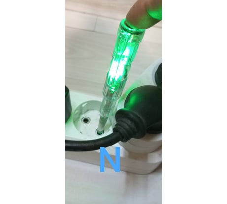 Очень интересная отвёртка. Выглядит как большинство привычных, с одним диодом. Но на самом деле диода у неё два. При прозвонке светит зелёный, в нулевом проводнике не светит если не касаться второго конца, и светит зелёным, если касаться. В фазном проводнике светит зелёным, если не касаться второго конца, и светит красным и зеленым одновременно, если касаться. Ну и если обрыв нуля, то не светит никаким, даже если касаться второго конца.