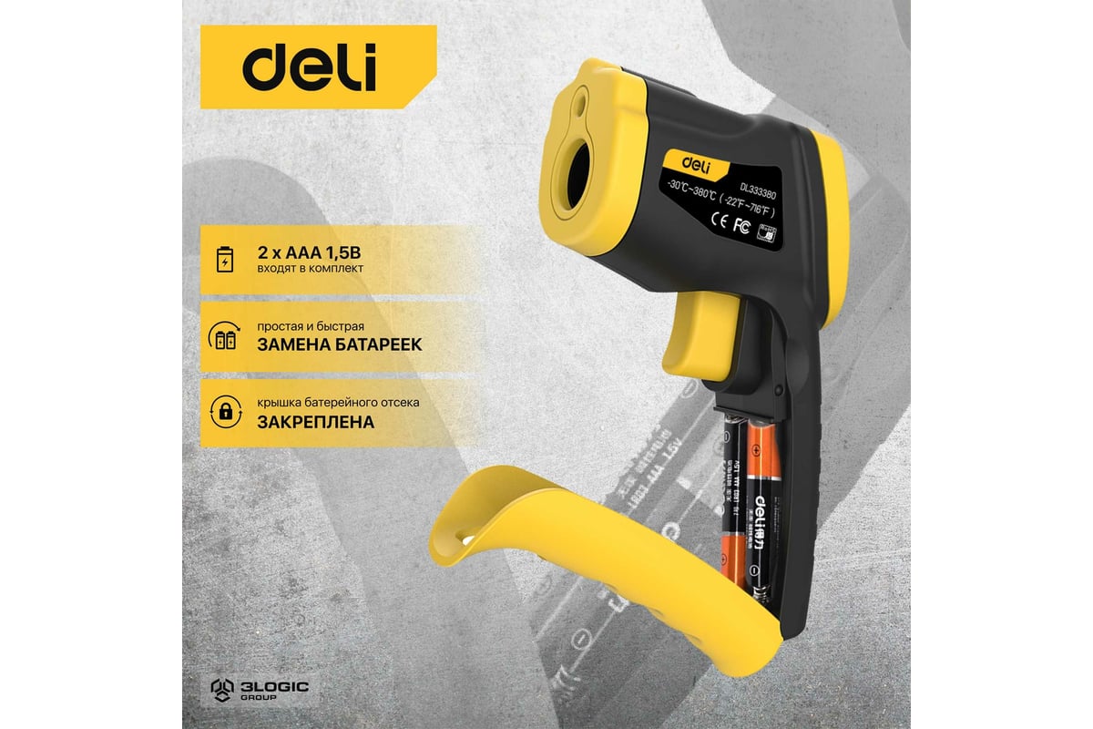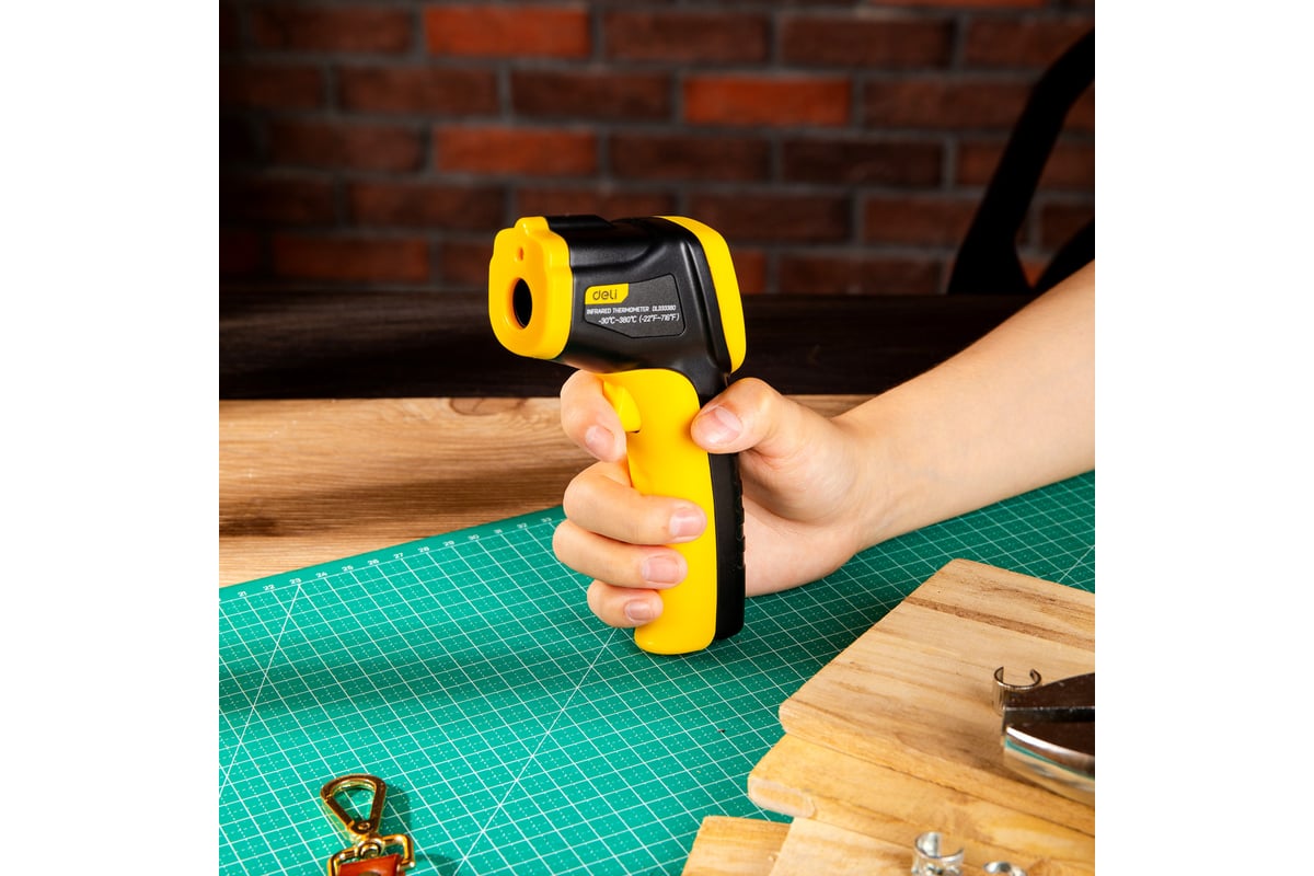 Инфракрасный термометр DELI dl333380 диапазон измерения -30С до 380°C или -22-716℉, LCD дисплей, отклик 0.5с 102968