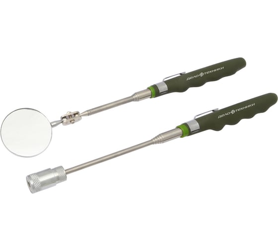 Инспекционный набор Дело Техники 2 предмета, магнит 2,3 кг, с подсветкой, зеркало Ø50 мм 838292 представляет собой набор вспомогательного инструмента для диагностики и ремонта. Подходит для бытового и профессионального использования.