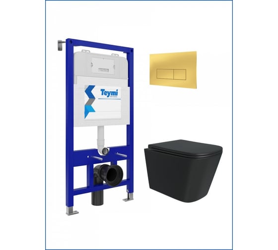Инсталляция комплект 5 в 1 Teymi унитаз подвесной безободковый черный Helmi Black кнопка золото F16122 ЦБ-00302390
