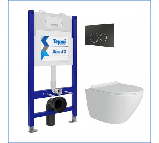 Инсталляция комплект 5 в 1 Teymi унитаз подвесной безободковый Lina Pro кнопка черная/хром F13515 ЦБ-00297757