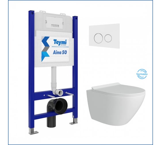 Инсталляция комплект 5 в 1 Teymi унитаз подвесной безободковый торнадо Lina Pro Vortex кнопка белая/хром F14481 ЦБ-00297768