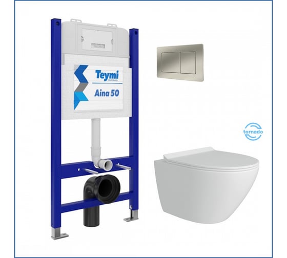 Инсталляция комплект 5 в 1 Teymi унитаз подвесной безободковый торнадо Lina Pro Vortex кнопка нержавеющая сталь F14485 ЦБ-00297775