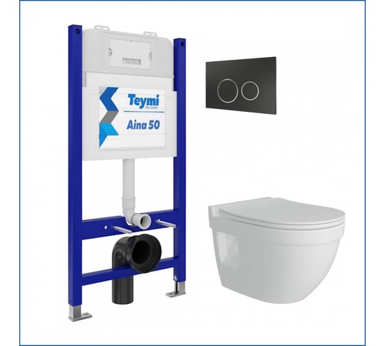 Инсталляция комплект 5 в 1 Teymi унитаз подвесной безободковый Vitra Pro кнопка черная/хром F13480 ЦБ-00297733