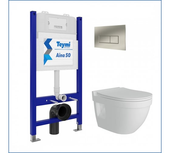 Инсталляция комплект 5 в 1 Teymi унитаз подвесной безободковый Vitra Pro кнопка нержавеющая сталь F13476 ЦБ-00297749