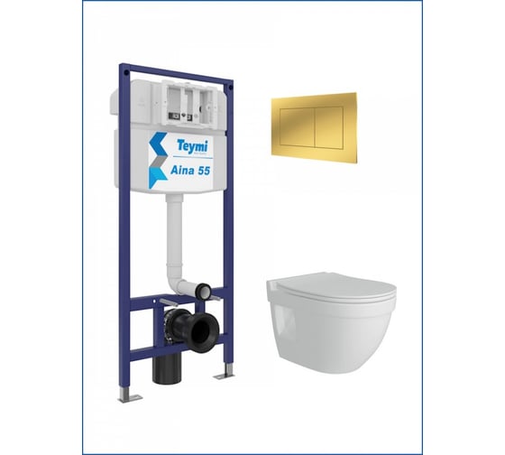 Инсталляция комплект 5 в 1 Teymi унитаз подвесной безободковый Vitra Pro кнопка золото F16077 ЦБ-00286391