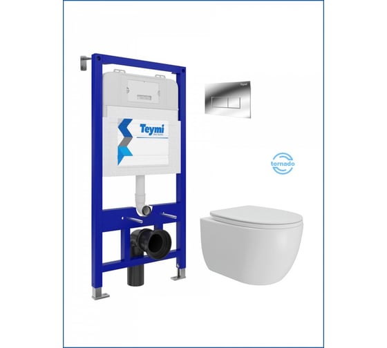 Инсталляция с унитазом комплект 5 в 1 Teymi унитаз подвесной безободковый Lori Vortex кнопка хром F1 F15787 ЦБ-00299294