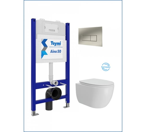 Инсталляция с унитазом комплект 5 в 1 Teymi унитаз подвесной безободковый Lori Vortex кнопка нержавеющая сталь F15812 F15812 ЦБ-00304343
