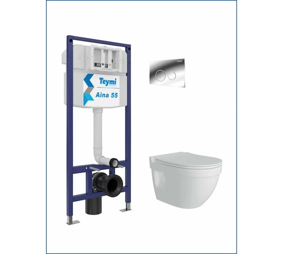 Инсталляция с унитазом комплект 5 в 1 Teymi унитаз подвесной безободковый Vitra Pro кнопка хром F13754 ЦБ-00286371