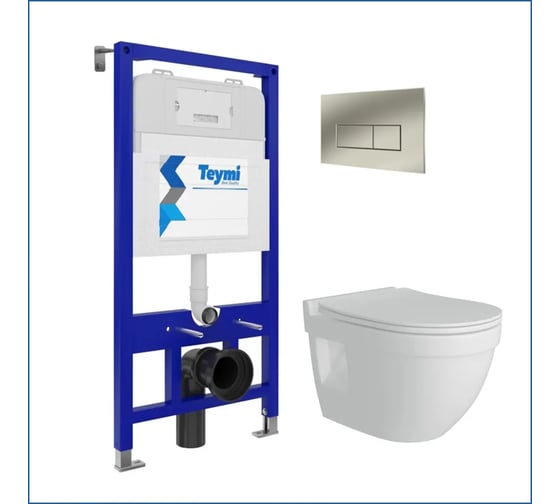 Инсталляция с унитазом комплект 5 в 1 Teymi унитаз подвесной безободковый Vitra Pro кнопка нержавеющая сталь F13350 ЦБ-00302381