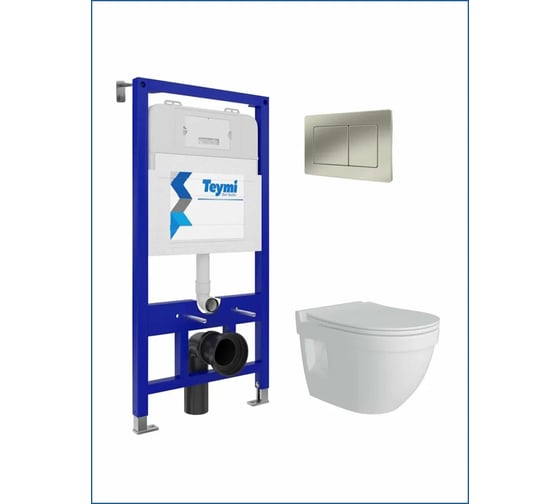 Инсталляция с унитазом комплект 5 в 1 Teymi унитаз подвесной безободковый Vitra Pro кнопка нержавеющая сталь F13356 ЦБ-00302380