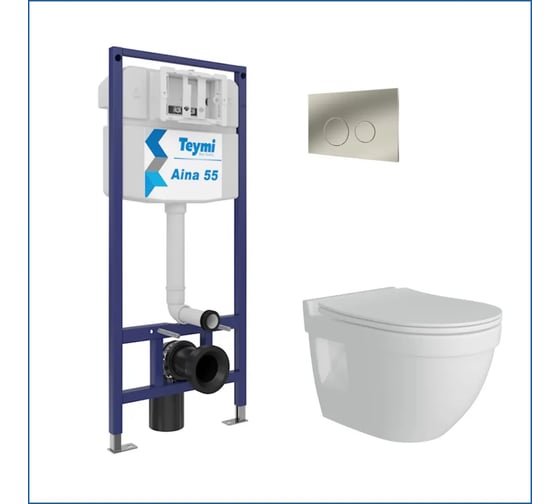 Инсталляция с унитазом комплект 5 в 1 Teymi унитаз подвесной безободковый Vitra Pro кнопка нержавеющая сталь F13770 ЦБ-00286375