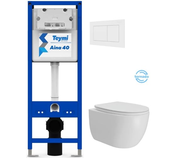 Инсталляция с унитазом Teymi комплект 5 в 1 унитаз подвесной безободковый Lori Vortex кнопка белая F16927 F16927 ЦБ-00303934