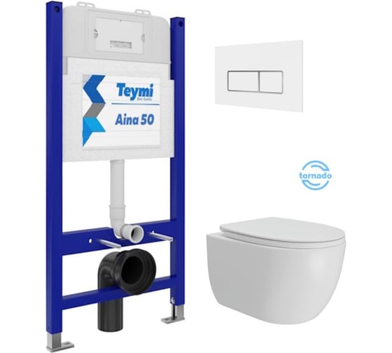 Инсталляция с унитазом Teymi комплект 5 в 1 унитаз подвесной безободковый Lori Vortex кнопка белая / хром F15814 F15814 ЦБ-00303966