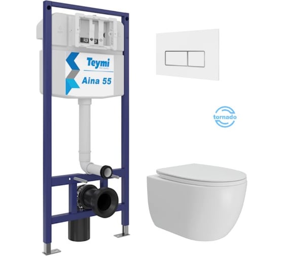 Инсталляция с унитазом Teymi комплект 5 в 1 унитаз подвесной безободковый Lori Vortex кнопка белая / хром F15836 F15836 ЦБ-00304321