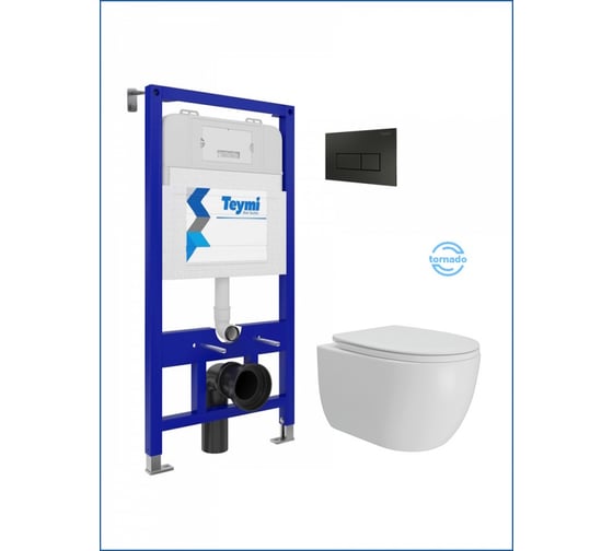 Инсталляция с унитазом Teymi комплект 5 в 1 унитаз подвесной безободковый Lori Vortex кнопка черная F15788 ЦБ-00299295