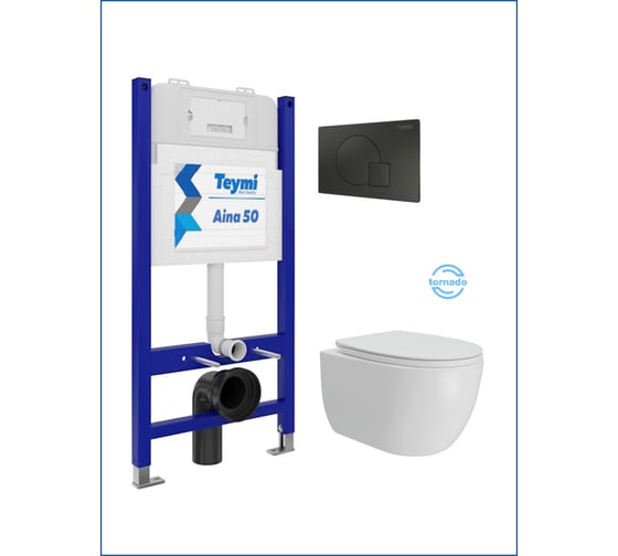 Инсталляция с унитазом Teymi комплект 5 в 1 унитаз подвесной безободковый Lori Vortex кнопка черная F15829 F15829 ЦБ-00303235