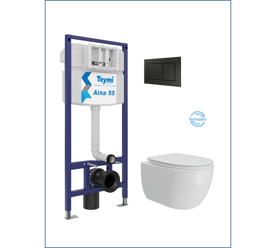 Инсталляция с унитазом Teymi комплект 5 в 1 унитаз подвесной безободковый Lori Vortex кнопка черная F15844 F15844 ЦБ-00304325