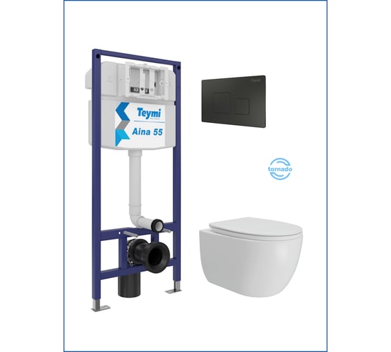 Инсталляция с унитазом Teymi комплект 5 в 1 унитаз подвесной безободковый Lori Vortex кнопка черная F15848 F15848 ЦБ-00304337